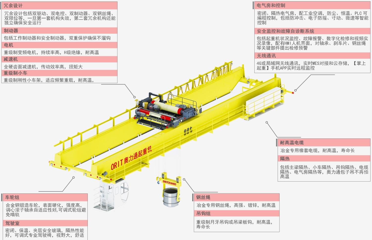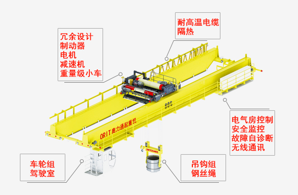 鋼絲繩 冶金專(zhuān)用鋼絲繩,高強(qiáng)、鍍鋅,耐高溫 吊鉤組 重級(jí)制月牙吊鉤或吊梁板鉤,耐高溫,壽命長(zhǎng)